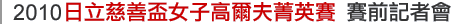 2010年才剛開始,台灣女子高爾夫球界就熱鬧滾滾。總獎金高達510萬元的「日立慈善盃女子高爾夫菁英賽」將於1月29至31日假林口東方高爾夫俱樂部精彩開打。除了去年冠軍前田久仁子尋求衛冕外,我國旅美優秀選手包括盧曉晴、洪沁慧,旅日選手呂曉娟、魏筠潔、呂雅惠,還有台灣新秀葉可蓁、日巡名將佐伯三貴等人預計都將連袂出擊,爭奪桂冠。